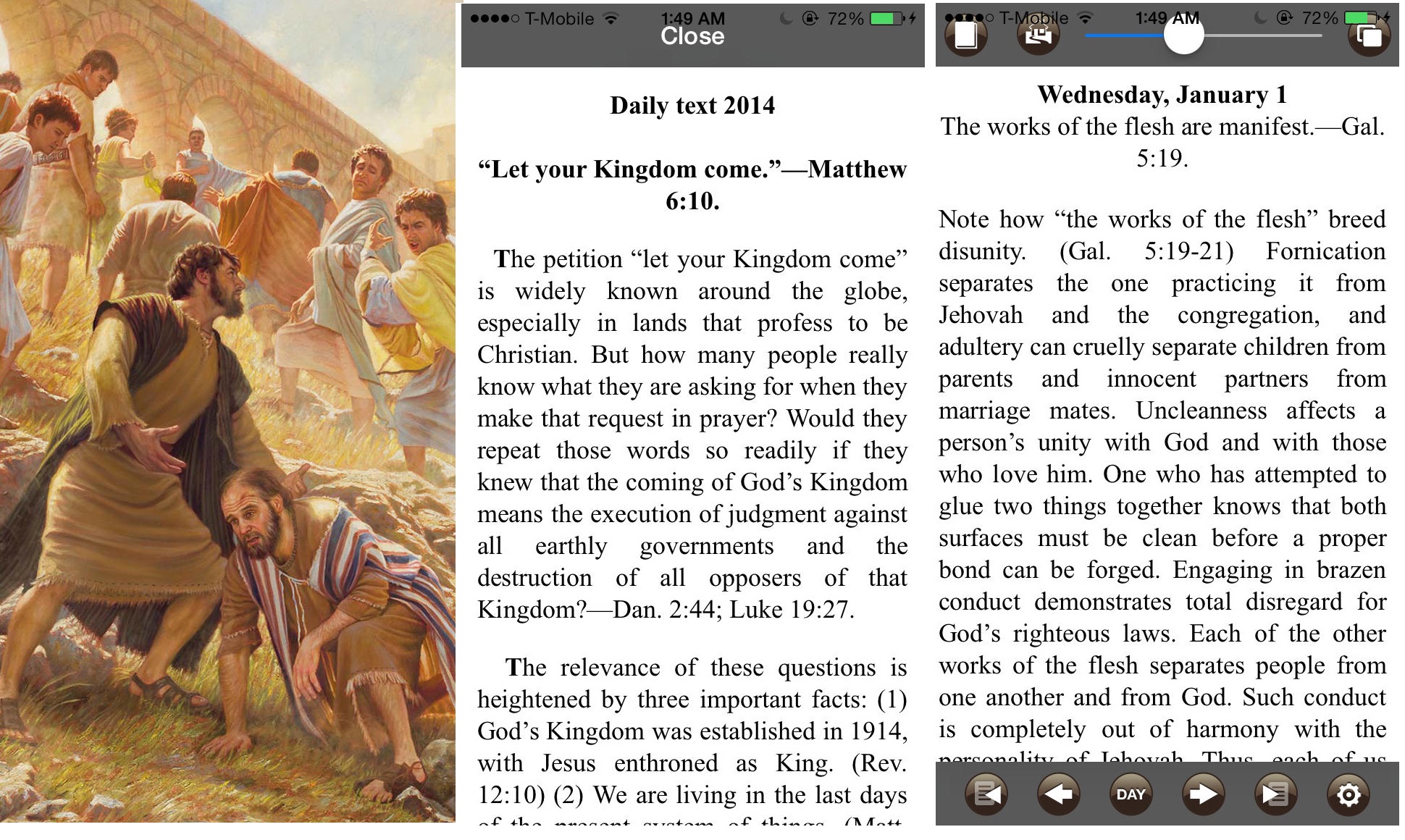 . . . This app is very convenient if you don’t happen to have your copy of “Examining the Scriptures Daily” with you at work, school, etc… Since you always have your iPhone with you, you can now keep day’s text right by your side. With support for multiple languages, people from many different lands can read the daily text from within one app. You can use this App in your life, car, bus, train, subway, ship, airplane, on the street, on the field service, at school, at work place, anywhere, anytime!